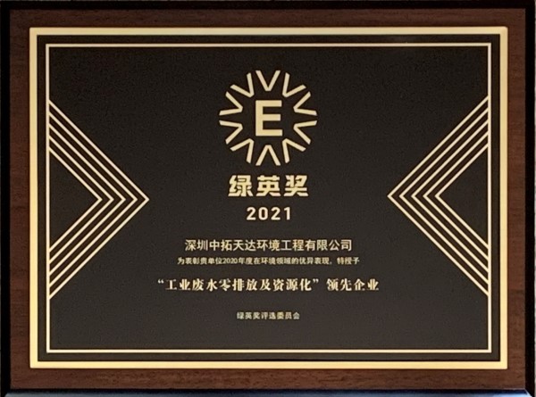 大會(huì)舉辦期間,公布了2021年“綠英獎(jiǎng)”獲獎(jiǎng)名單,深圳中拓環(huán)境工程有限公司很榮幸地被授予“工業(yè)廢水零排放及資源化 領(lǐng)先企業(yè)”獎(jiǎng)項(xiàng)。